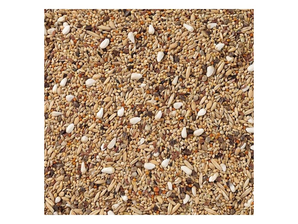 Složení: proso žluté, lesknice, kardi, proso bílé, proso japonské, semenec, proso červené, pohanka, niger, oves lámaný, lněné semeno, oves loupaný, paddy rýže.
